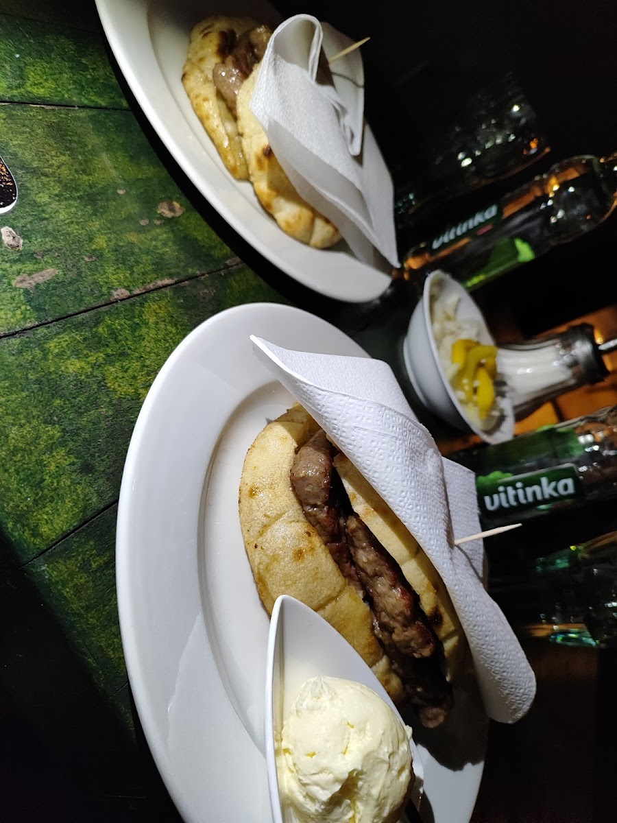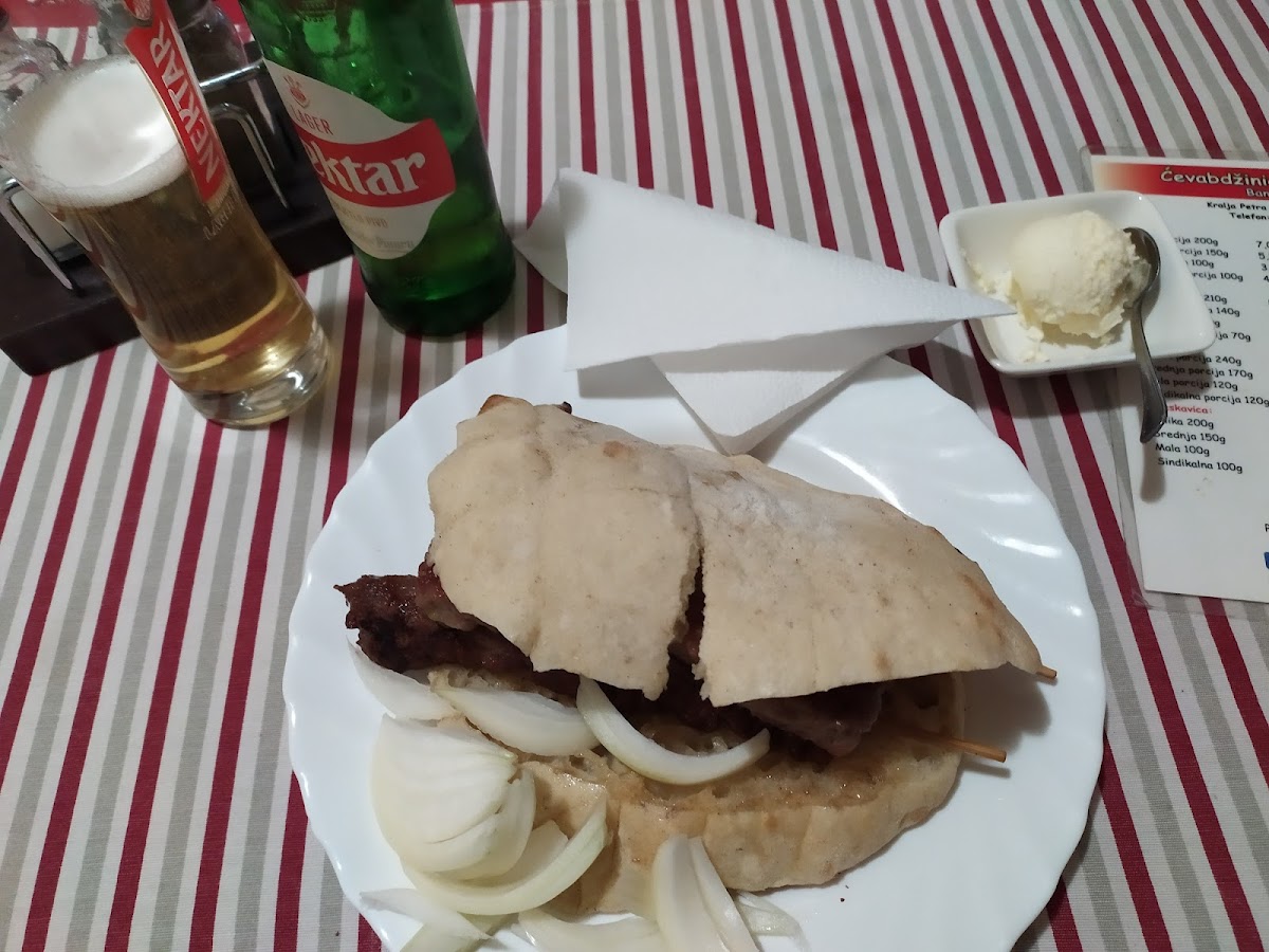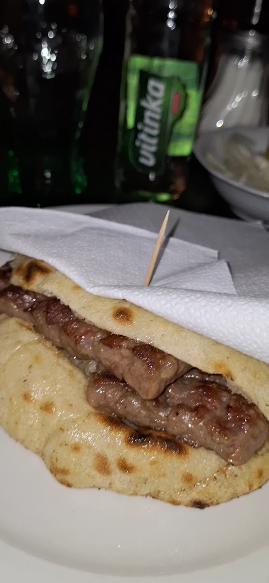 I had the combined šiš cevapi and cevapi. They were super yummy and I especially recommend the šiš cevapi as they are very crunchy, juicy, tender and a bit spicy. The service is super friendly. At the back outside there's a table in the sun and there's a lot of space.
