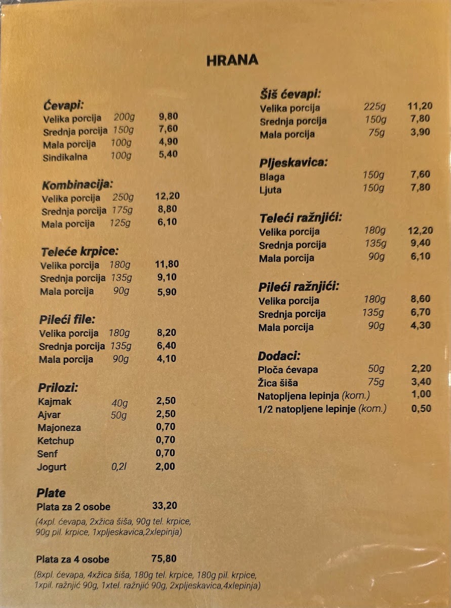 Welcome to Pod lipom, a hidden gem located at Kralja Petra I Karađorđevica 10, Banja Luka. Renowned for its deliciously grilled Banjalučki ćevapi, this eatery offers a warm, inviting atmosphere that promises a delightful dining experience. Diners have praised the friendly staff who speak English and provide attentive service. With their mixed platter being a standout favorite, every bite reflects a dedication to quality and flavor. Importantly, Pod lipom maintains a halal menu, appealing to diverse dietary preferences, though it lacks draft beer options. Customers consistently rave about the affordable prices, especially appealing for both locals and international visitors. Despite some minor challenges, such as cash-only payments and occasional indoor smoke, the overall ambiance remains welcoming, making it a must-visit destination in Banja Luka. If you seek flavorful meals in a friendly setting, Pod lipom is definitely worth your time!